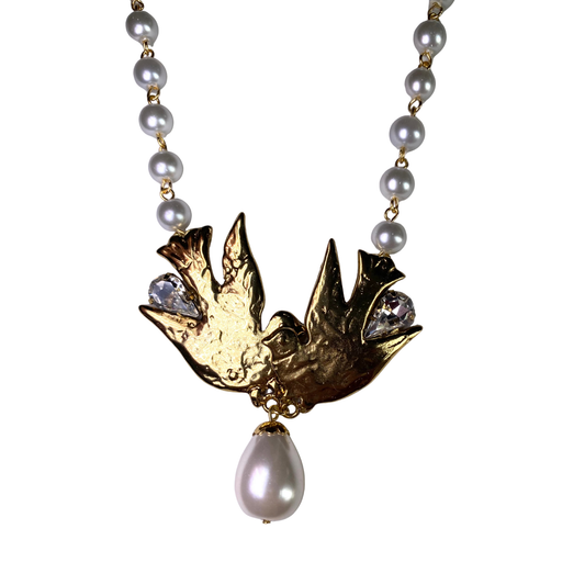 Colar Pombas com Pérolas