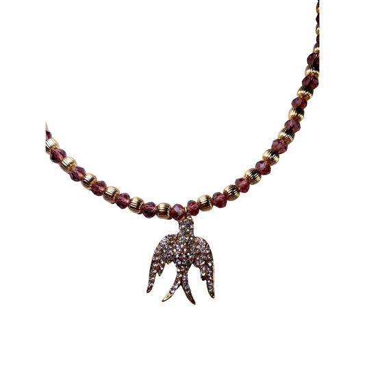 Colar Pomba Longo e Cristal Roxo