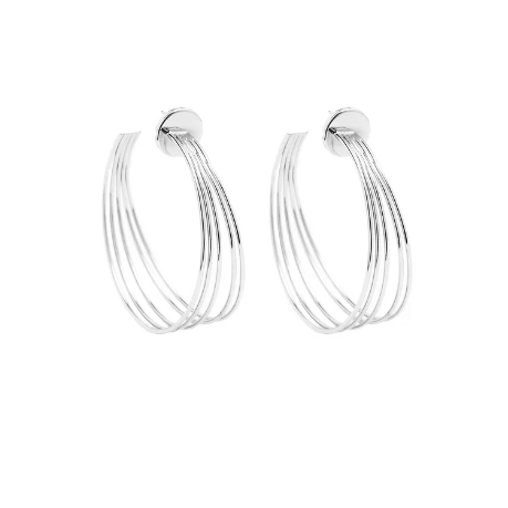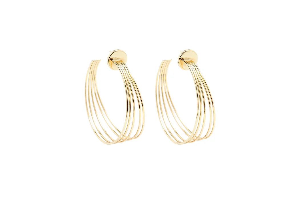 Brinco argola em fios feito de metal com banho em ouro 18k e prata. Fechamento em pino.