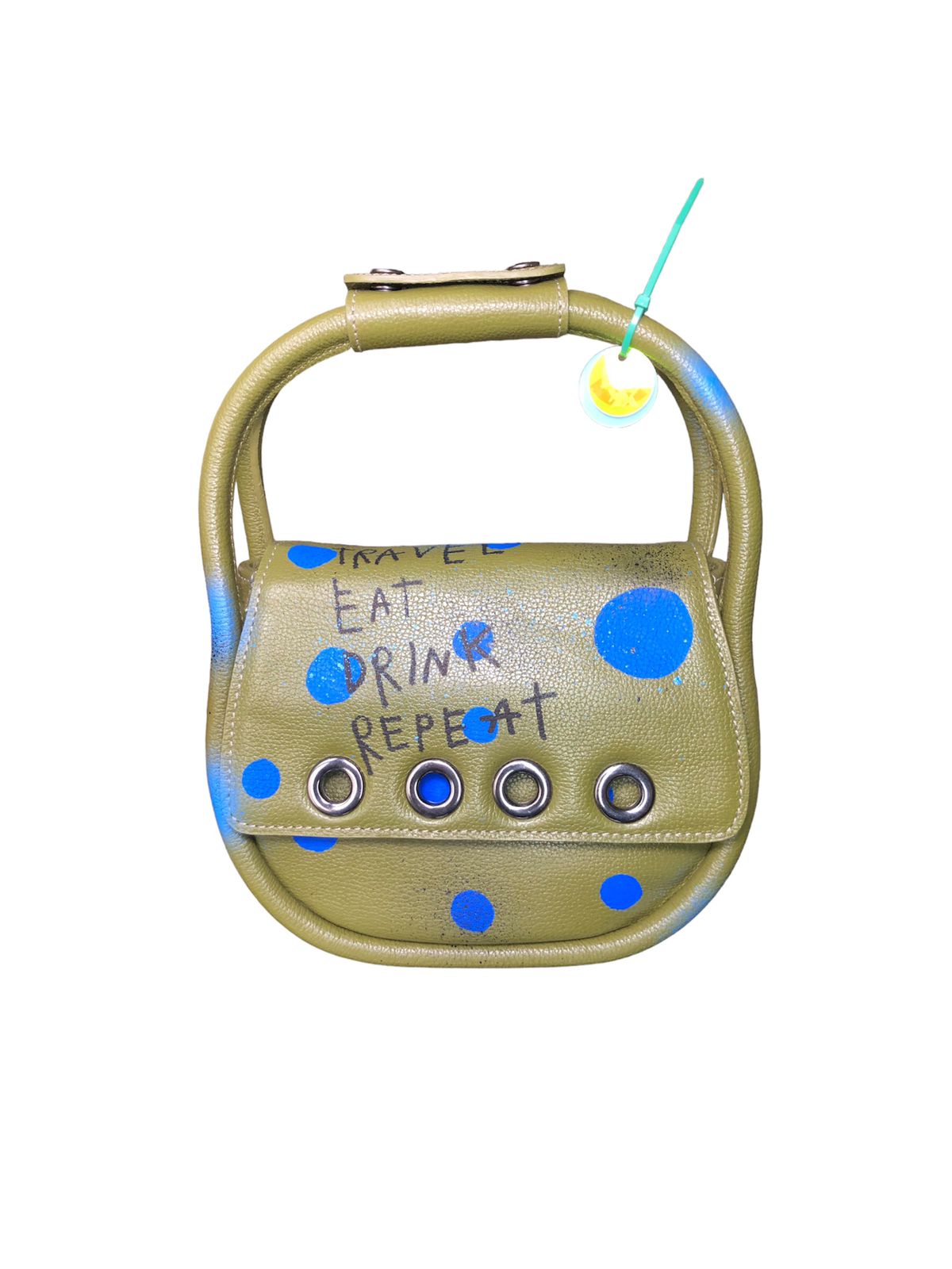 Bolsa Bené de couro com acabamento em silicone colorido com a cor de sua escolha, customizada a mão em collab com SouaMax, estampas exclusivas, com alça fixa e removível.