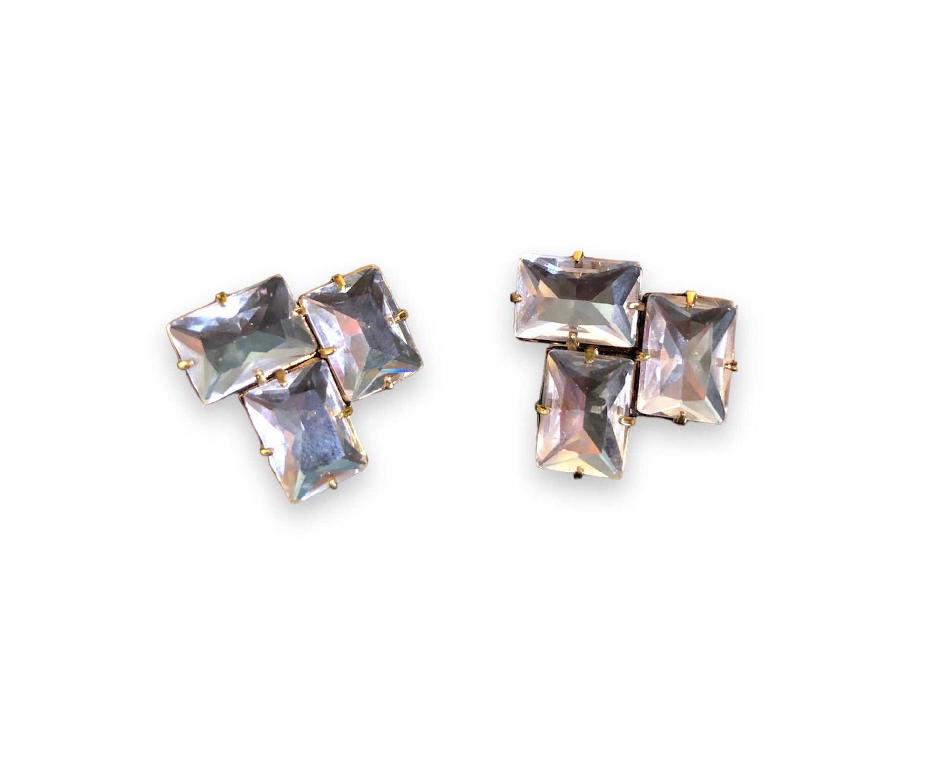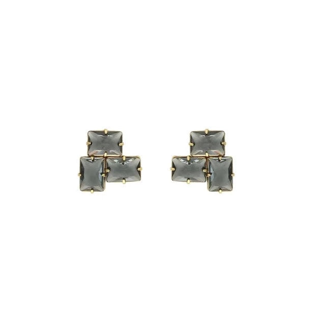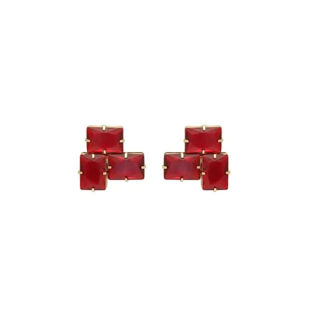 Brinco em metal banho a ouro 18K com cristais nas cores verde, vermelho e preto. Fechamento em pino.