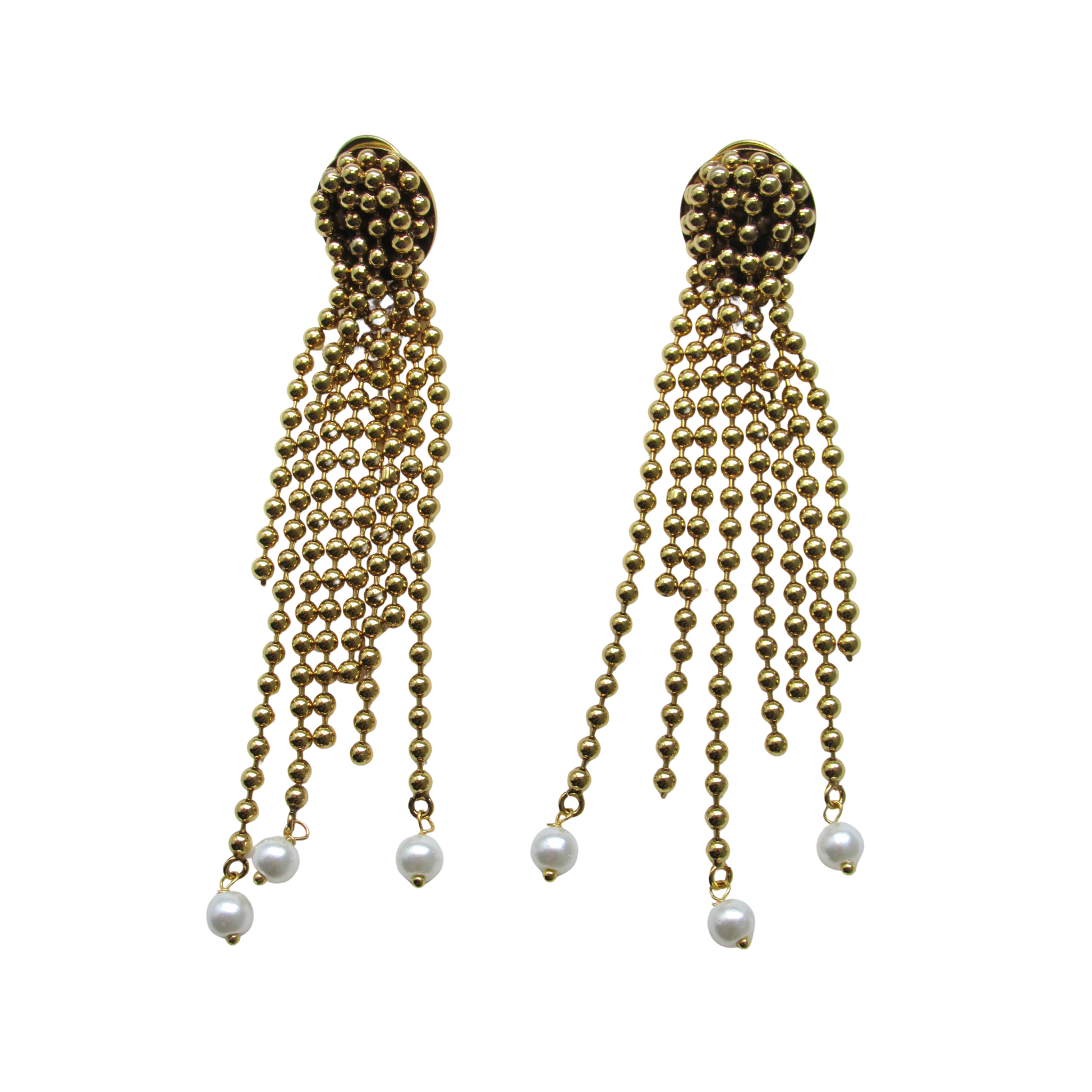 Brinco Chuveiro de Bolinhas Ouro e Pérolas.