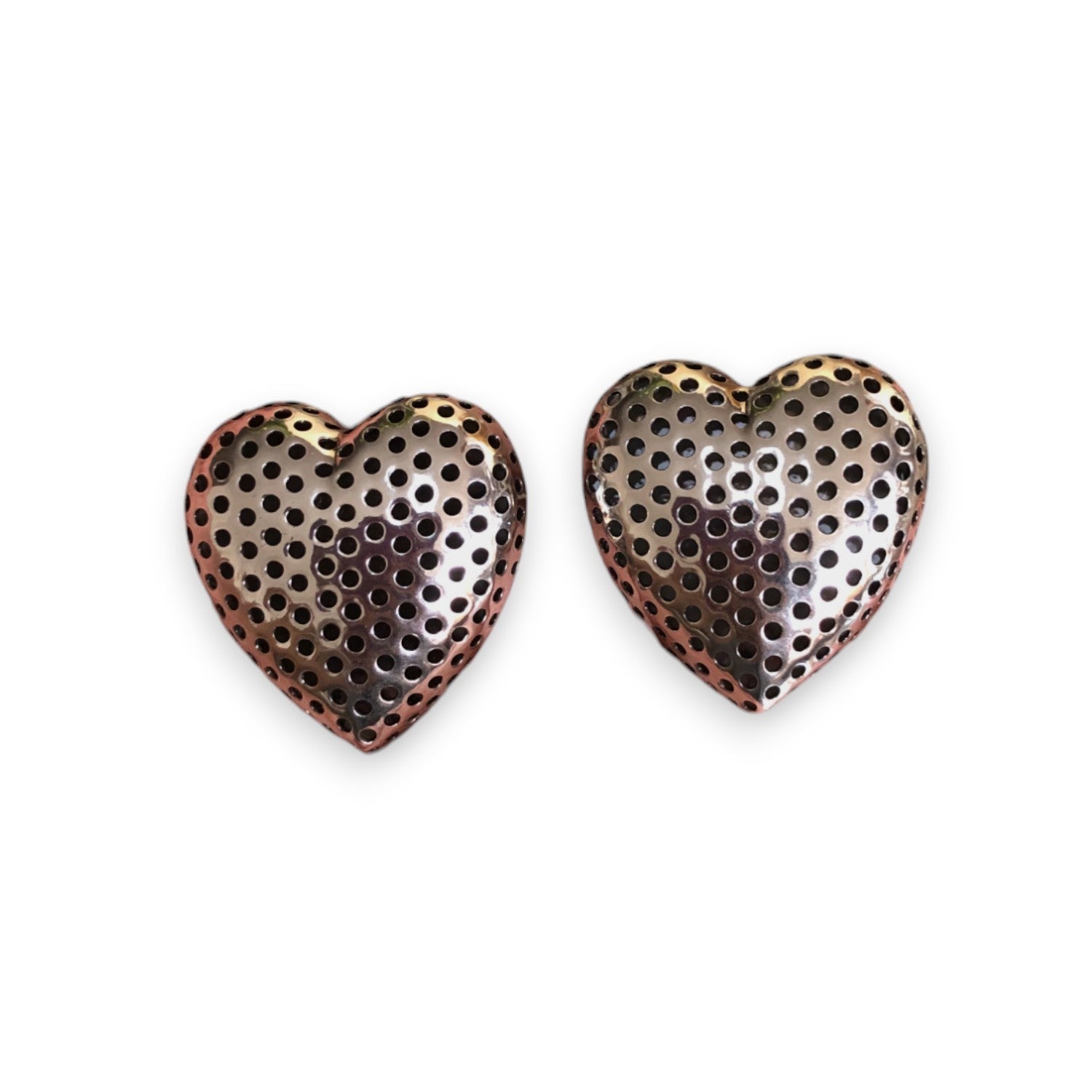 Brinco em metal banho ouro 18k ou em prata em formato de coração. Fechamento em pino.