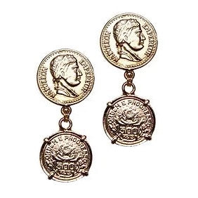 Brinco em moeda dupla, metal banho ouro vintage. Fechamento em pino.