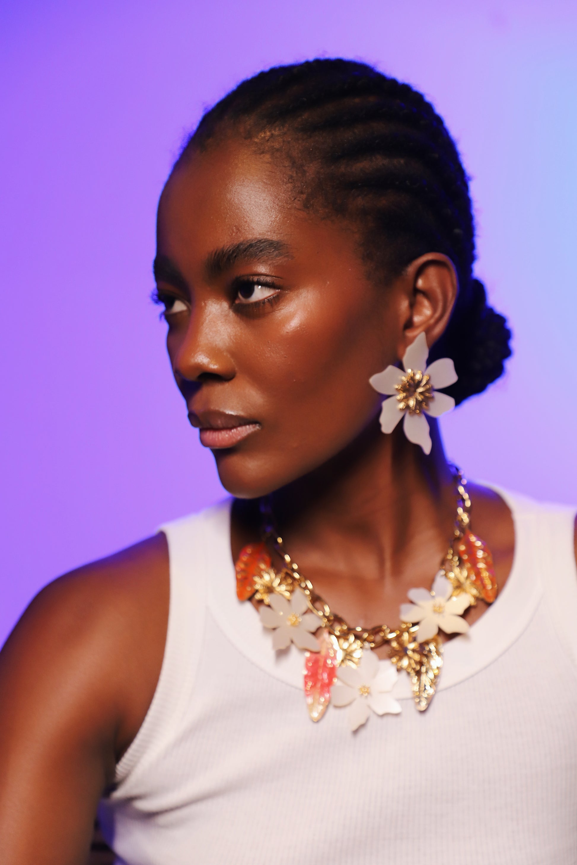 Rose Benedetti lança coleção de alto verão 2025, a coleção Flowers, composta por brincos, colares e choker, confeccionados em resina, macramê, e metal com banho de ouro.