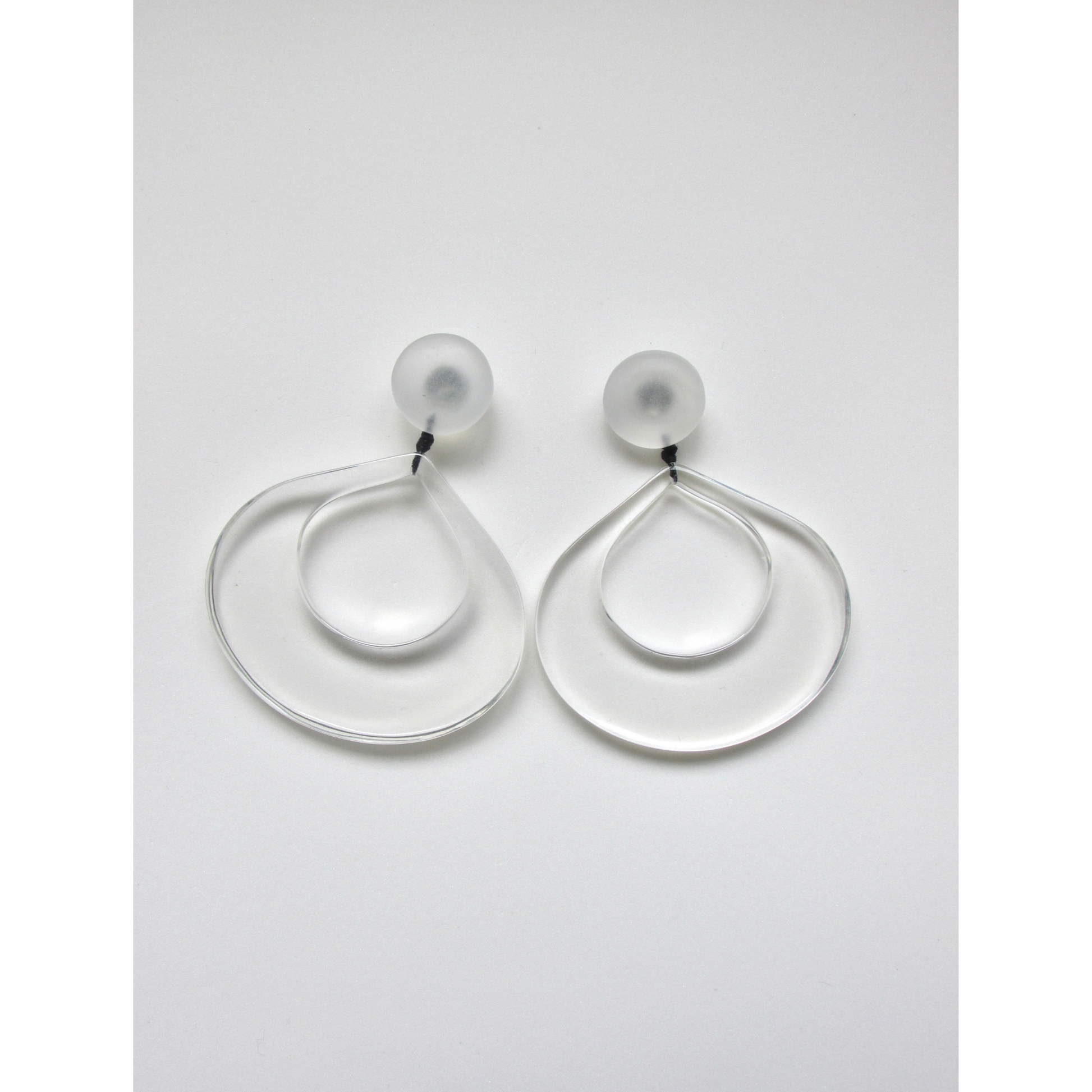 O Brinco Gota Lúmen é feito em resina transparente e possuí pino em resina Lalique.