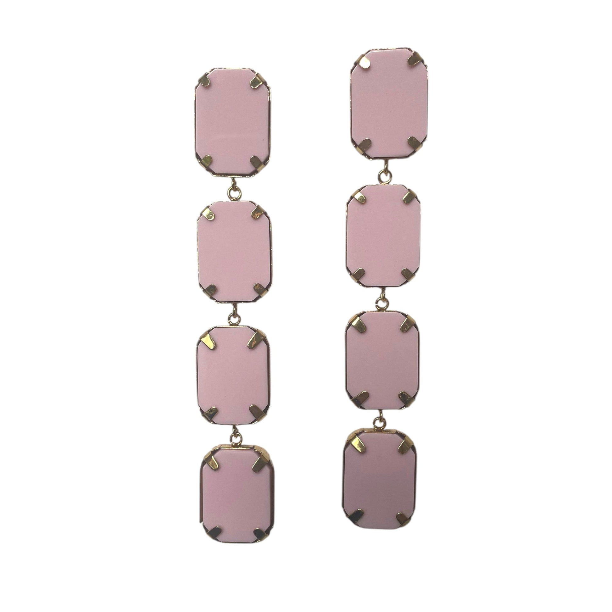 Brinco com caixinhas de metal pendente com pedras de resina, super leve.