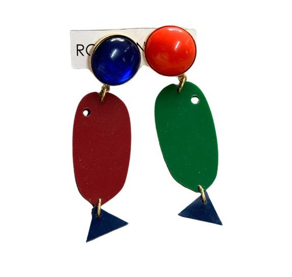 Brinco em metal banho ouro e pingente de peixe em acrílico com 8 cm de comprimento. Fechamento em pino.