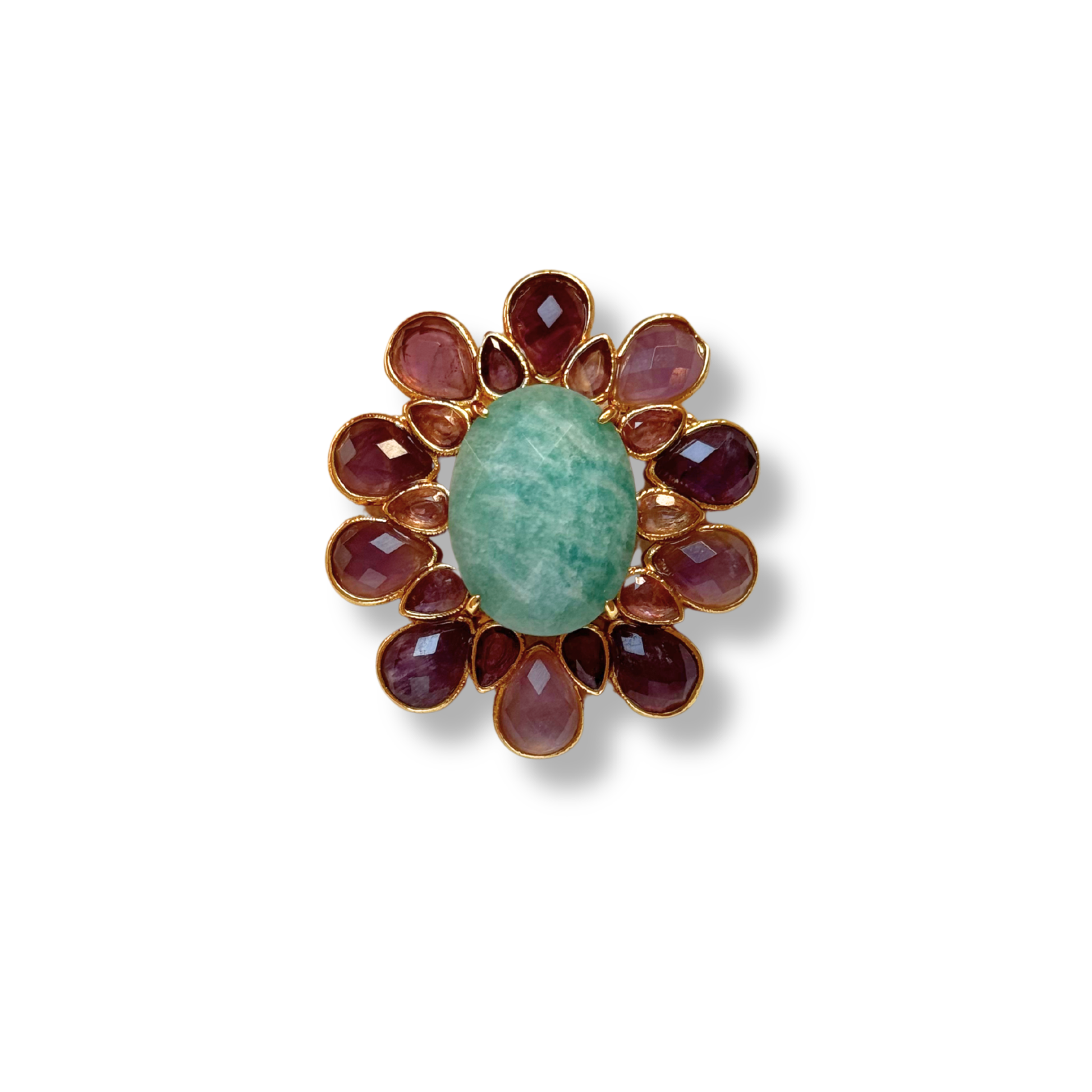 Broche Flor Ametistas e Pérola
