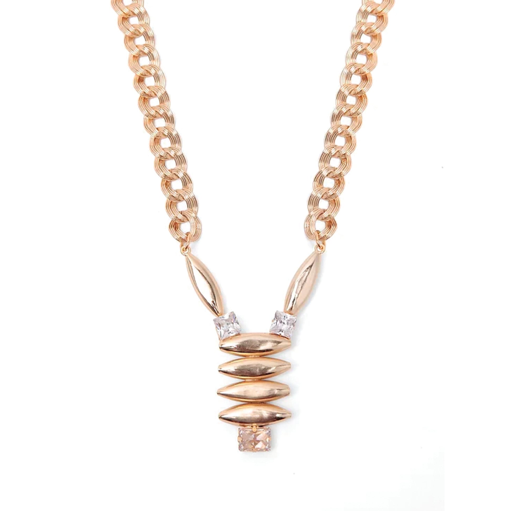 Colar em metal banho a ouro 18K e prata com cristais, feito à mão com 46cm de comprimento. Fechamento em mosquetão.