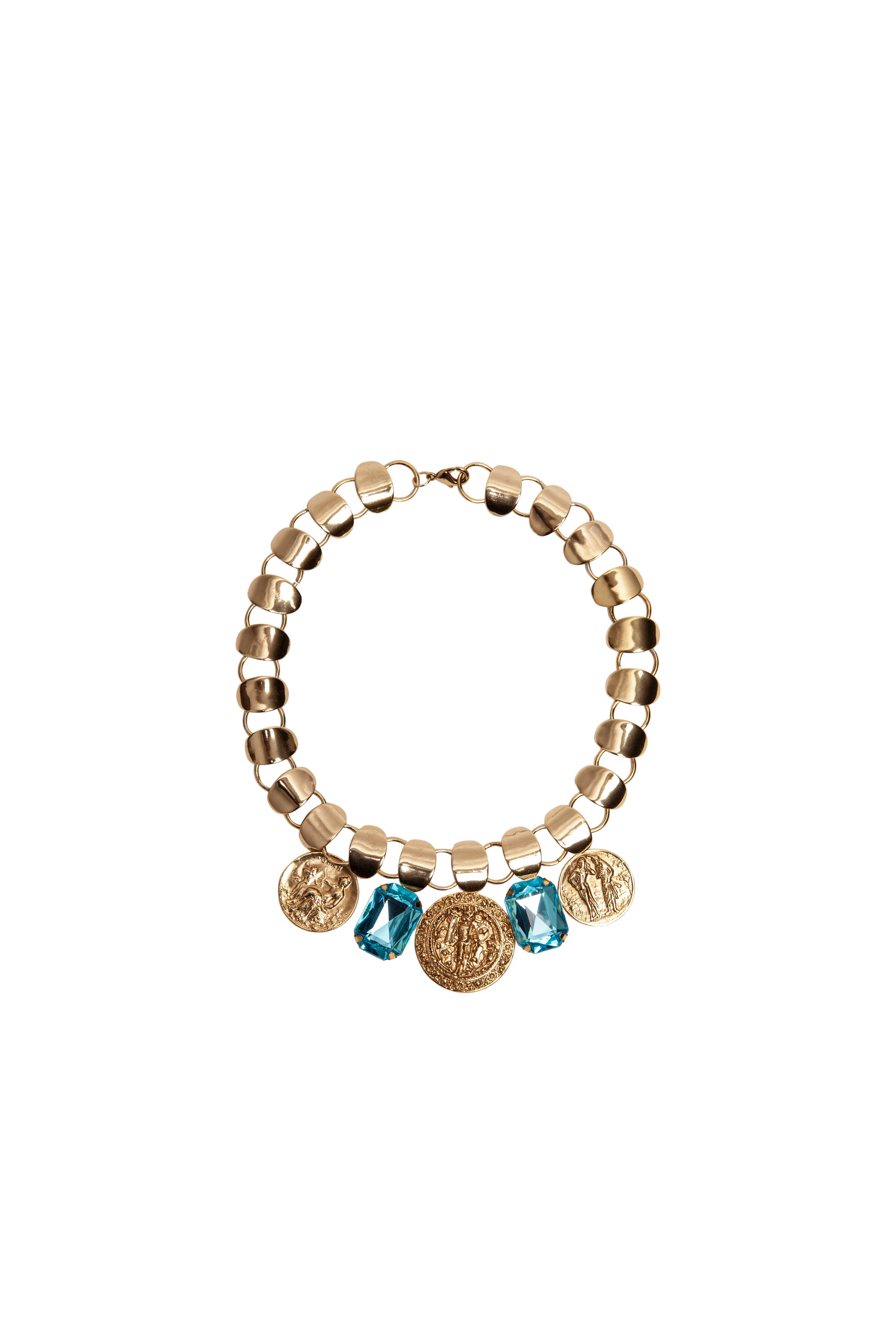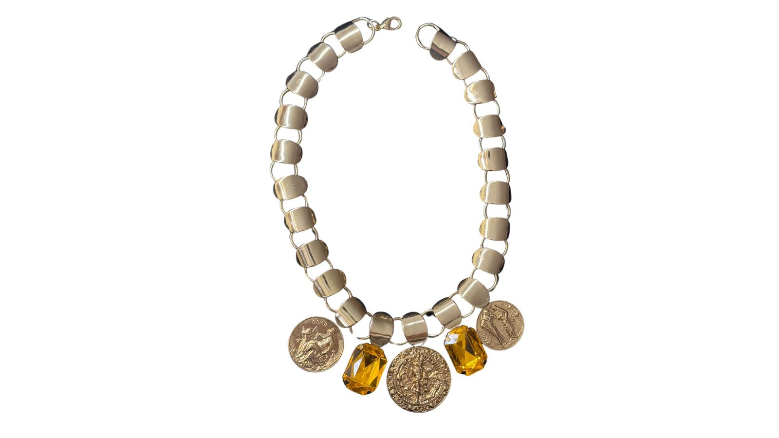 Colar com pingentes de moeda e citrino ( 3x2 cm), banhado em ouro 18k.