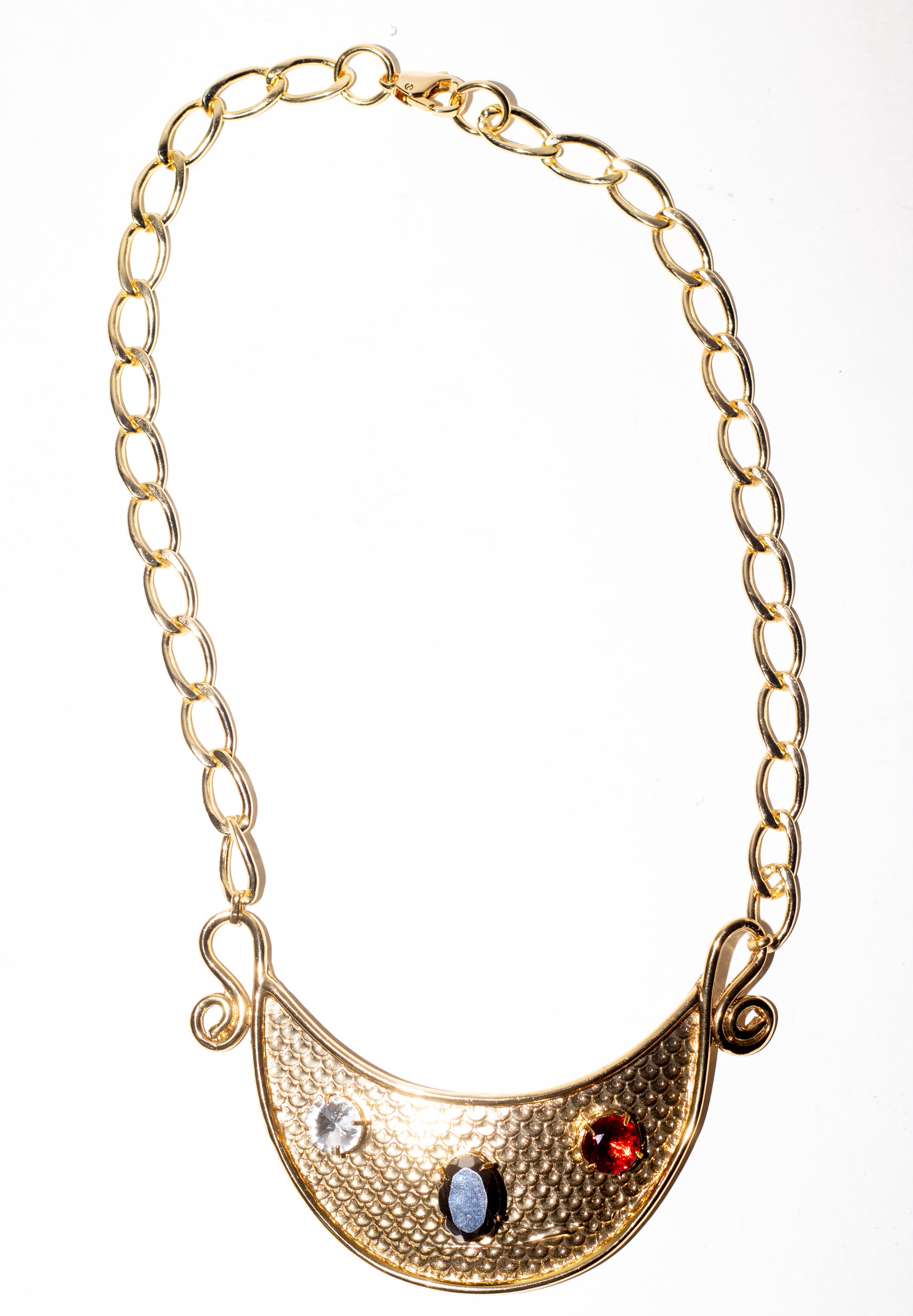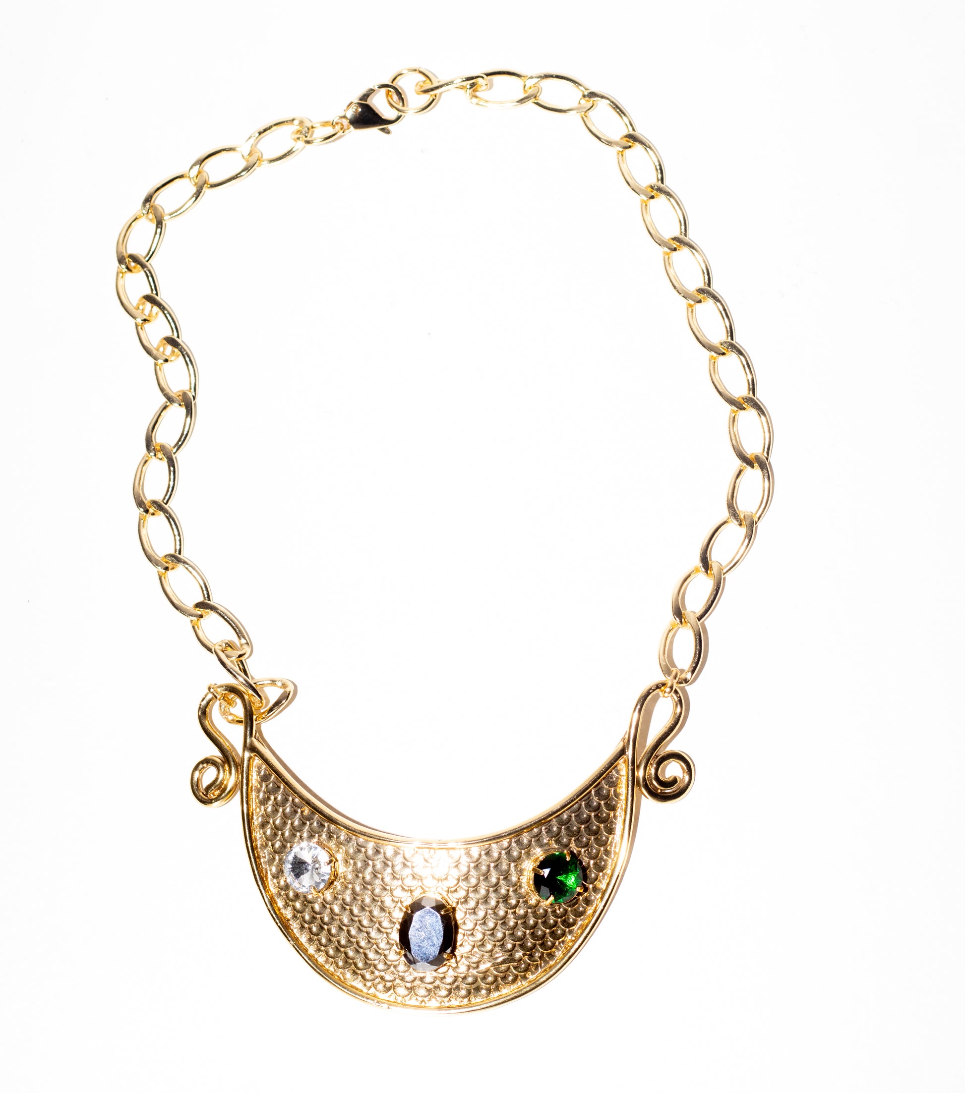 Colar em correntes com banho a ouro vintage 18k com cristal Swarovski, com 25 cm de comprimento.