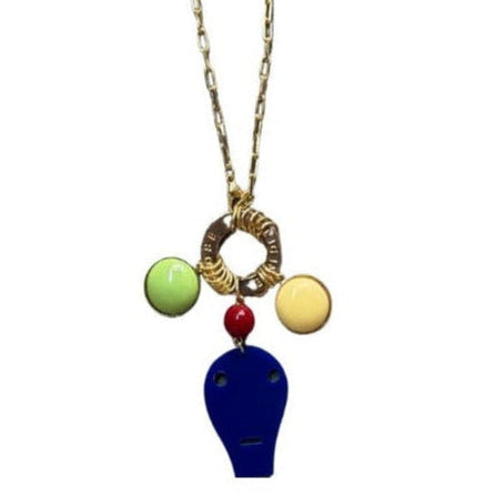Patuá feito em corrente banho a ouro 72cm de fio a fio, com pingentes pendurados de máscara.