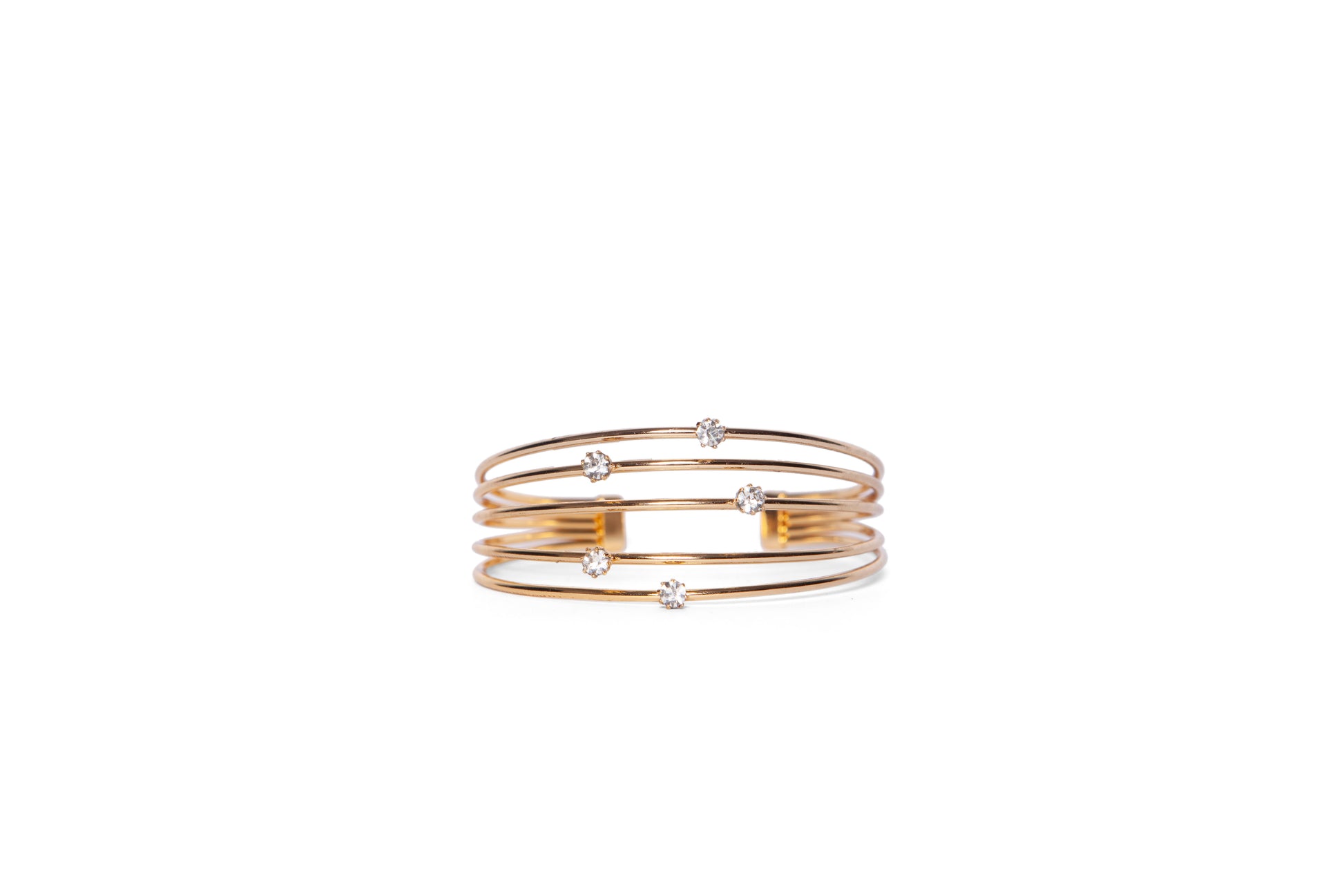 Bracelete em metal banho a ouro 18k com cristais, ajustável com 6.5 cm de diâmetro.